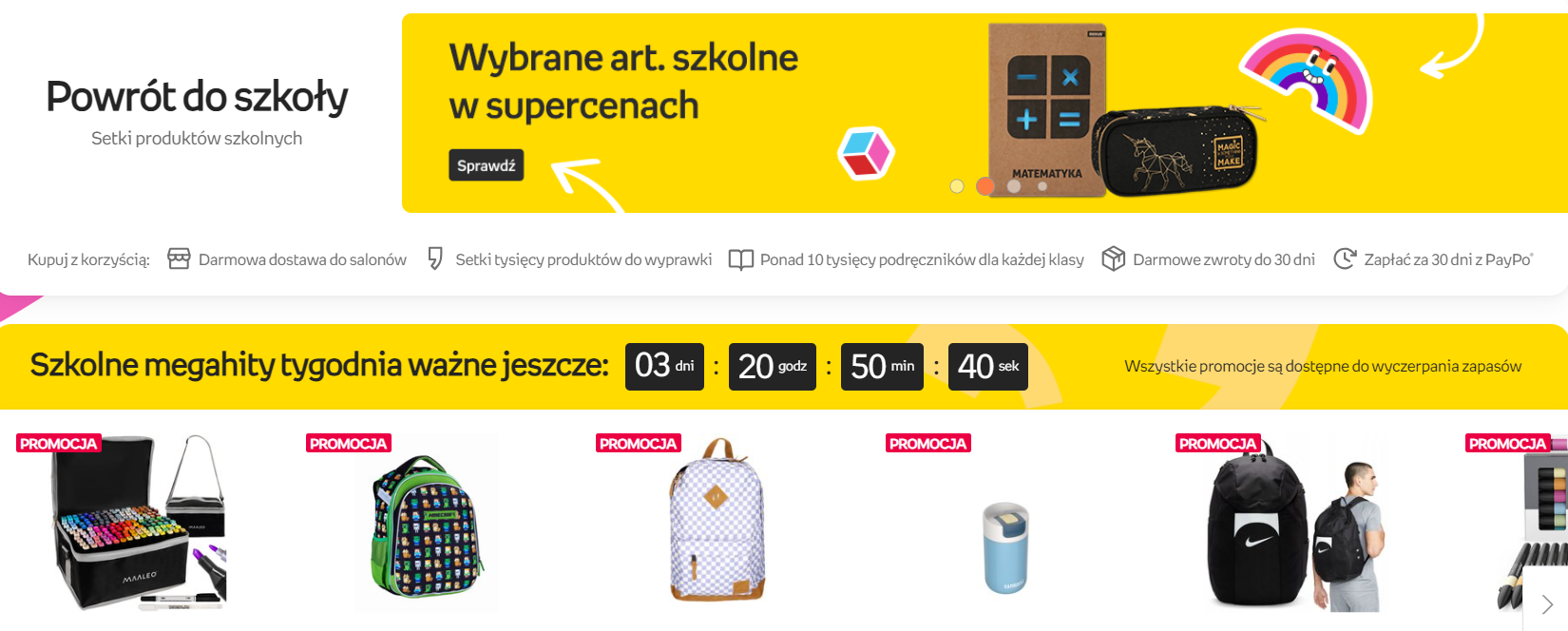 - Szeroki wybór produktów: Upewnij się, że oferujesz wystarczająco dużo produktów związanych z edukacją. Weź pod uwagę różne kategorie – od artykułów szkolnych po elektronikę. Asortyment na powrót do szkoły powinien zawierać nie tylko podręczniki i artykuły szkolne, ale także ubrania, technologię i inne niezbędne akcesoria.