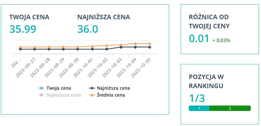 Narzędzia do monitorowania cen: Korzystaj z narzędzi do monitoringu cen online, które oferują funkcję automatycznego monitorowania cen konkurencji. Wiele z nich dostarcza też cennych analiz i raportów. Narzędzia, takie jak Szpiegomat, oferują również rozbudowane opcje repricingu i alertów cenowych.=